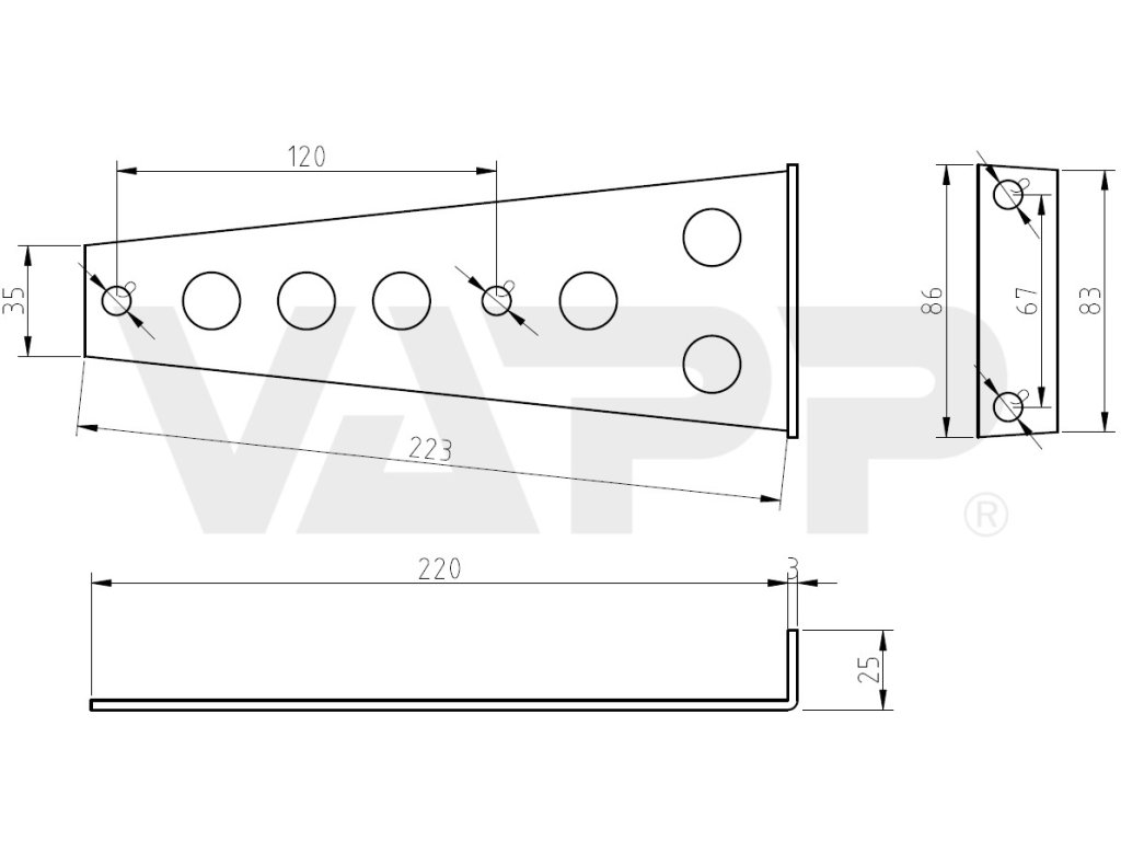 Držák blatníku AL-KO / DOMAR pro 14" kola je kvalitní konstrukční díl přívěsné techniky, navržený pro spolehlivé uchycení blatníku přívěsu k rámu. Zajišťuje stabilní polohu blatníku i při jízdě na nerovném povrchu a přispívá k ochraně konstrukce přívěsu před nečistotami a odstřikující vodou.