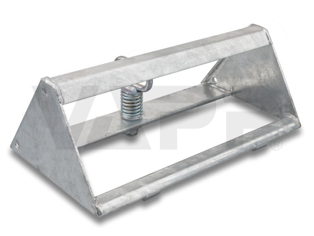- Rychloupínací klín (přední doraz) pro zajištění vozidla na ložné ploše přívěsu vybaveného pojezdovými plechy s děrováním VAPP.