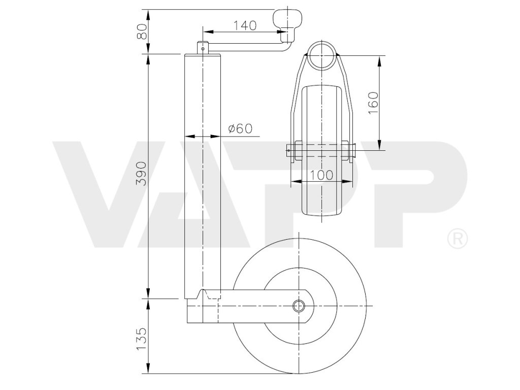 Kolečko opěrné Winterhoff ST 60-255 SB 250 kg