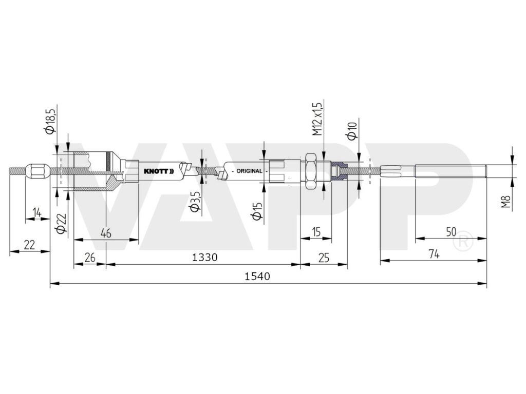 Lanovod brzdový KNOTT 1330/1540 mm, závit M8