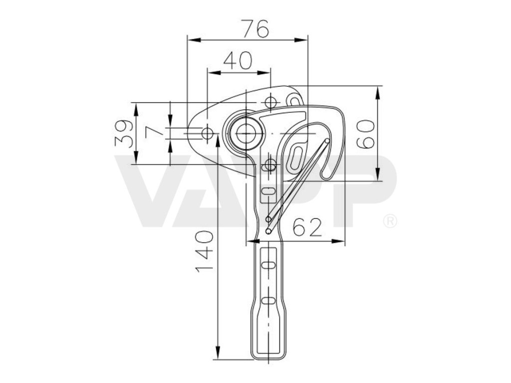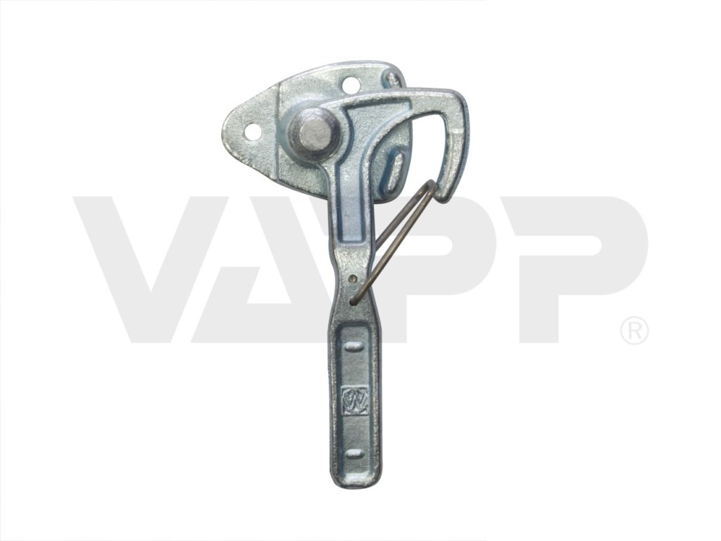 Litinový závěr bočnic (karhák) pravý, s plotýnkou pro přišroubování k bočnici. Dodává se samostatně bez protikusu, protikus - oko lze objednat samostatně. Pružinová pojistka drží hák závěru v uzavřeném stavu bezpečně zapadlý do protikusu. Před otevřením se pojistka otevře pouhým stisknutím - není potřeba vyndavat žádné závlačky a pojistky na řetízku, jako u jiných typů.