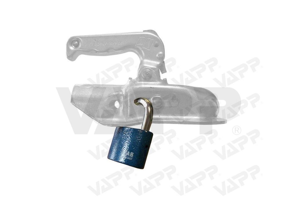 Visací zámek FAB s pětistavítkovou cylindrickou vložkou, vhodný k uzamčení tažných spojek ALBE, KNOTT a Winterhoff s bočním čepem posuvným v oválné díře. Zámek se nasazuje po zavření tažné spojky do oválného otvoru na boku tažné spojky za čep, který se v této oválné díře po zavření posune dopředu. Třmen zámku se provléká pouze za jednu stěnu tažné spojky a jistí posuvný čep, proti pohybu dozadu. Tím je znemožněno otevření tažné spojky. Aby se tažná spojka zavřela, je potřeba ji buď připojit k tažnému kulovému čepu, anebo místo něj ko tažné spojky použít bezpečnostní vložku, viz související produkty níže. Tělo zámku je z odolné litiny, třmen zámku je ocelový, pozinkovaný. Zámek je vybaven dvěma stejnými klíči, jako běžné dveřní vložky FAB. Není tak problém nechat přidělat libovolný počet dalších klíčů. Průměr třmenu zámku: 10 mm. Lze použít na tažné spojky: Tento zámek nelze použít na tažné spojky: