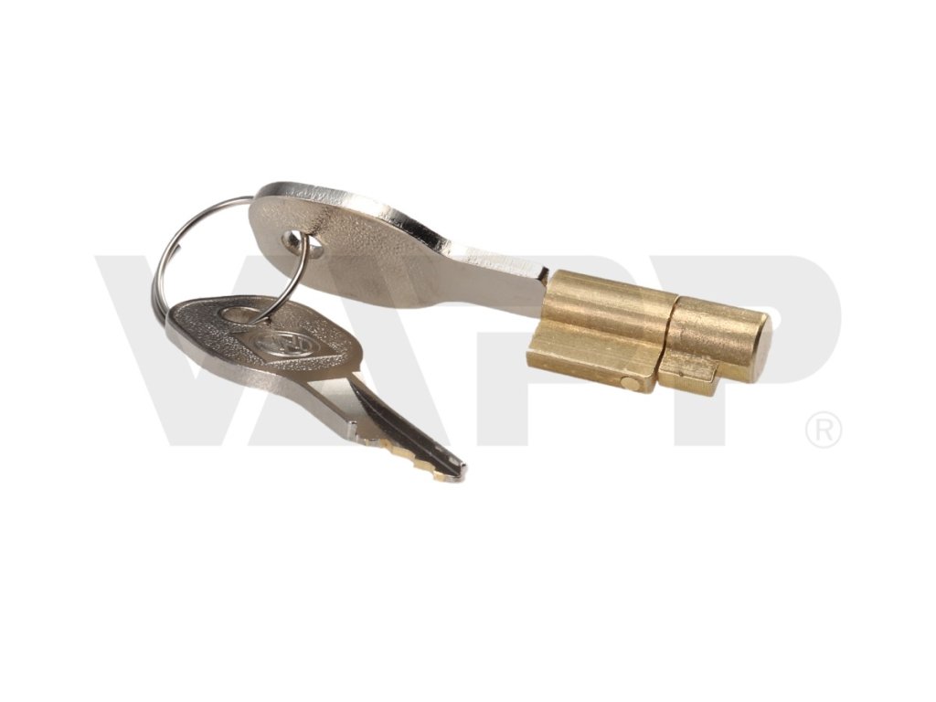 - Zámek se vkládá do otvoru v ovládacím madle tažné kulové spojky. Aby bylo možné zámek do otvoru vložit a zamknout, musí být tažná spojka uzavřená buď na kouli nebo naprázdno. Zámek brání otevření tažné spojky ovládacím madlem.