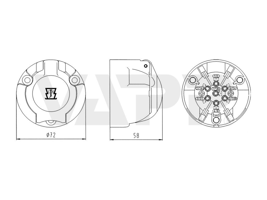 Zásuvka 7 pólů 12V plastová JAEGER