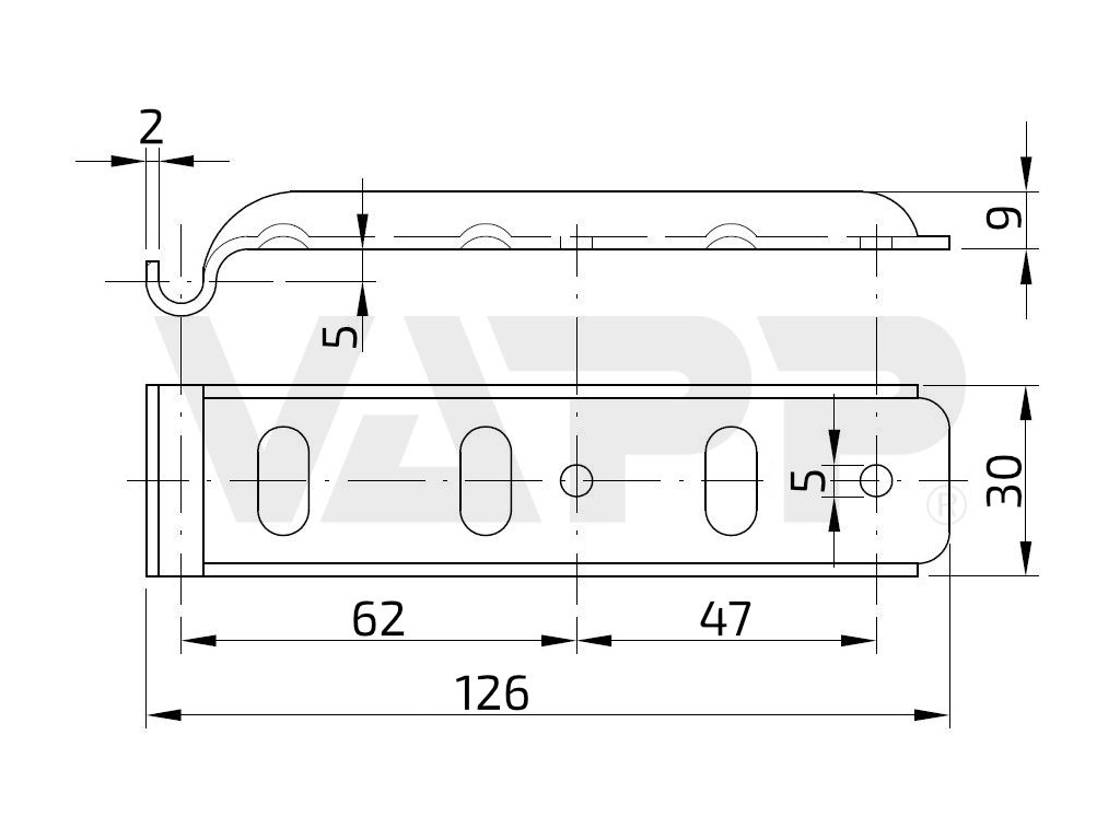 Protikus k přeskám BV/10/1 a BV/10/2, rovný, vhodný k našroubování na bočnici bez zvýšeného lemování.