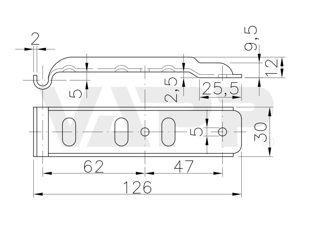 Protikus k přeskám BV/10/1 a BV/10/2, vyhnutý. Vyhnutí protikusu umožňuje jeho montáž na bočnice s lemováním, kde je potřeba, aby zadní část protikusu dolehla přímo na bočnici a přední vyhnutá část se opírala o zvýšené lemování tl. až 1,5 až 3 mm. Hloubka vyhnutí je 2,5 mm.